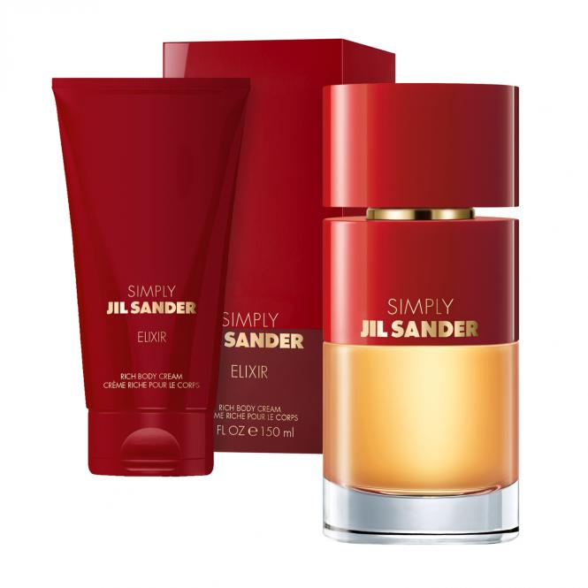 Jil Sander Simply Elixir está disponível em 40 e 60 ml Eau de Parfum, acompanhado de um creme corporal de 150 ml.